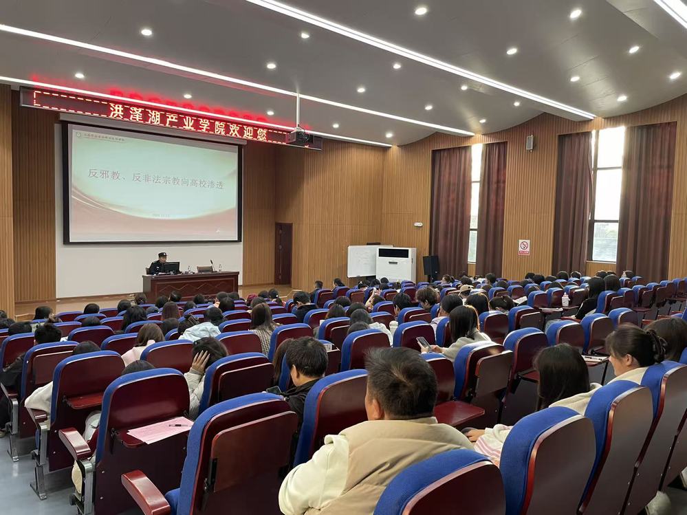 为筑牢校园安全屏障,防范邪教及非法宗教向高校渗透,近日,betway西汉姆联官方网站特邀淮安市公安局洪泽分局民警王凌玉,为全院师生开展“反邪教、反非法宗教渗透”主题知识讲座,切实将校园安全工作落到实处。